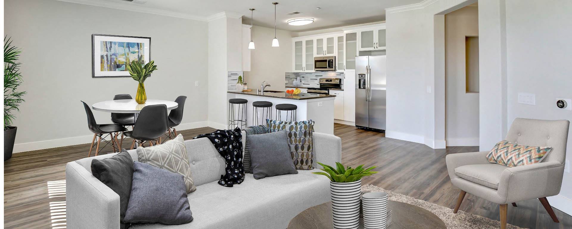 Apex Mission Valley Apartments brings your comfort to greater heights. This welcoming community has everything you’d expect from a dream home – spacious layouts and renovated interiors full of high-end amenities. Ideally placed in Mission Valley, San Diego, our condo-caliber apartments open your door to amazing parks and recreational areas. To give you an idea, you’ll be within steps of Fashion Valley and minutes away from the University of California San Diego and Kaiser Permanente.Each day is full of promise at our one, two or three-bedroom apartments in Mission Valley. The open living area is light filled, the ceilings soar high, and the patio or balcony offers a breath of fresh air. So, let the washer/dryer set take care of the laundry, choose an outfit from the spacious walk-in closet, and cook up a hearty meal in your modern kitchen. You may even enjoy an elegant penthouse.Enjoy our shared spaces. Dive into the refreshing pool, gather around the outdoor fireplace, and let the bar